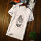 纯棉男士短袖t恤修身大码半袖体恤简约印花打底衫白色个性衣服潮