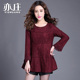 春秋新款妈妈装蕾丝打底衫裙胖mm显瘦T恤加大码女装中长款蕾丝衫