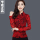 2017春款女装 红玫瑰弹力长袖衬衫女妈妈装中老年透气网纱花衬衣