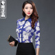 中年女装长袖衬衫女2017春装新款女士上衣网纱修身妈妈装印花衬衣