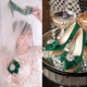 真皮秋季绿色红女单鞋中跟矮低跟细跟水钻蝴蝶结浅口羊反绒高跟鞋