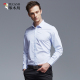 啄木鸟男装2017春季新品细格纹长袖衬衫男士修身提花商务休闲衬衣