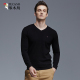 啄木鸟纯羊毛衫男V领套头修身 男士毛衣春季2017新款纯色针织衫