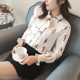 雪纺衬衫女长袖2017新款春韩版宽松蝴蝶结系带白色碎花雪纺衫上衣