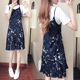 夏季新款雪纺连衣裙吊带裙外搭两件套显瘦碎花裙中长款吊带连衣裙