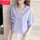 刺绣衬衫女2017夏装新款韩范V领气质显瘦小清新条纹衬衣女夏季潮