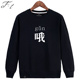 中国风汉字印花青少年潮流嘻哈卫衣男黑色加大号秋季运动套头外套