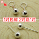 正品S999纯银耳钉 光面耳钉 手工豆豆弯钩小圆珠耳饰 不过敏包邮