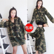 2016春秋新款韩版女装学生宽松休闲迷彩服中长款长袖T恤连帽卫衣