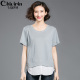 千韵伊然胖mm2017夏装新款加肥加大码女装假两件上衣宽松显瘦t恤
