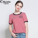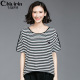 千韵伊然款欧美特大码女装2017夏装新款条纹宽松显瘦T恤小衫上衣