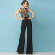 柒卡斓2017夏季新款雪纺连衣裤连体裤阔腿裤休闲女甩宽长裤子L08