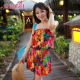 包邮 波西米亚沙滩裙度假裙 巴厘岛海边女连衣裙裹胸印花裙裤短裤