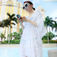 包邮 马尔代夫海边度假沙滩防晒衣 女薄款蕾丝针织开衫短外套