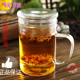 加厚女士式办公室水杯子带把单层玻璃杯有盖过滤茶杯家用茶水分离