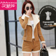 2016秋冬名媛女士气质修身小香风棉衣短裤两件套时尚套装裙女装潮