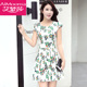 2017夏季韩版雪纺连衣裙时尚印花裙女士收腰修身显瘦短袖中裙女装