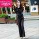 2017春装名媛女士气质修身显瘦休闲上衣两件套阔腿裤时尚套装女装
