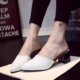 2017春款欧美风方头粗跟中跟女拖鞋单鞋韩版舒适百搭半拖潮流女鞋