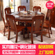 实木圆形餐桌带转盘家用1.5/1.8米中式仿古雕花酒店大圆桌椅组合