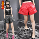 欧洲站2017秋冬新款真皮靴裤女中松紧腰短裤百搭阔腿绵羊皮短裤头