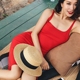 撩~2017夏红色性感修身包臀后开叉U型领背心连衣裙智仙生同款