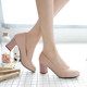 春秋纯色圆头单鞋优雅高跟鞋浅口鞋超高跟单跟时装女鞋粉色秋鞋