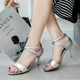 2017春夏新款银色高跟鞋细跟时尚女鞋浅口中跟单鞋露趾一字扣凉鞋