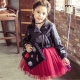 韩版童装2017春装长袖女童连衣裙皮衣拼接网纱公主裙儿童蓬蓬裙子