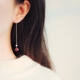 Cecilia深酒红色爱心锆石天然珍珠纯银耳线14k包金耳环无耳洞耳夹