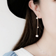 独家手工低调天然淡水珍珠闪钻长款耳线纯银耳环无耳洞耳夹女