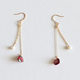 原创设计 红色耳环美国14k包金爱心石榴石简约长款气质无耳洞耳夹