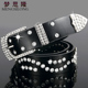 梦思隆女士皮带真皮牛皮水钻镶嵌装饰宽腰带时尚百搭牛仔裤带女款