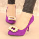 2016新款水钻珍珠方扣婚鞋细跟女鞋尖头浅口红紫黑色高跟单鞋女潮
