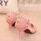 2016春夏新款韩版串珠裸色鱼嘴单鞋细跟凉鞋浅口中跟女鞋水钻约会