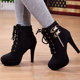 高跟防水台超高铆钉系带新款罗马细跟短靴子女马丁靴秋冬女鞋大码