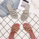 欧洲站夏季新款香风鞋纯色简约休闲平底凉拖夹趾链条罗马拖鞋女夏