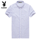 花花公子 男士短袖衬衫 春季男装 春秋男衬衫 薄 纯棉格子衬衣