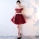 宴会晚礼服2017新款一字肩短款学生聚会小礼服连衣裙女新娘敬酒服