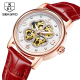 斯卡络正品女士全自动机械表真皮带防水女表时尚潮流手表镂空腕表