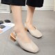 奶奶鞋女春夏中跟粗跟单鞋方头2017新款后空包头镂空凉鞋高跟鞋