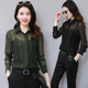 帛撒雪纺衫衬衫女长袖蕾丝百搭2017春装新款女装镂空网纱打底衫
