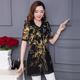 修品夏季雪纺衫2017韩版修身大码印花雪纺衫女中长款短袖雪纺上衣
