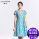 钡萱2017春夏新款印花气质高腰修身连衣裙圆领短袖裙子S61014G
