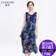 钡萱2017春夏新款印花气质高腰连衣裙中长款圆领无袖裙子S61013G