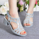 韩版凉鞋女夏平底坡跟中老年舒适套脚鱼嘴软底防滑简约休闲妈妈鞋
