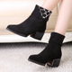 秋冬韩版新款头层羊皮纯色水钻粗跟两穿及踝靴裸靴短靴女靴子