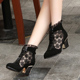 春秋欧美 蕾丝网靴粗跟暗钻凉靴高跟短靴女靴单靴春靴