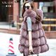 2016冬季新款整皮狐狸毛皮草中长款马甲 斗篷狐狸毛连帽女装外套