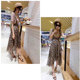 欧洲站2017韩版春装新款印花开衫系带中袖收腰长款雪纺连衣裙女夏